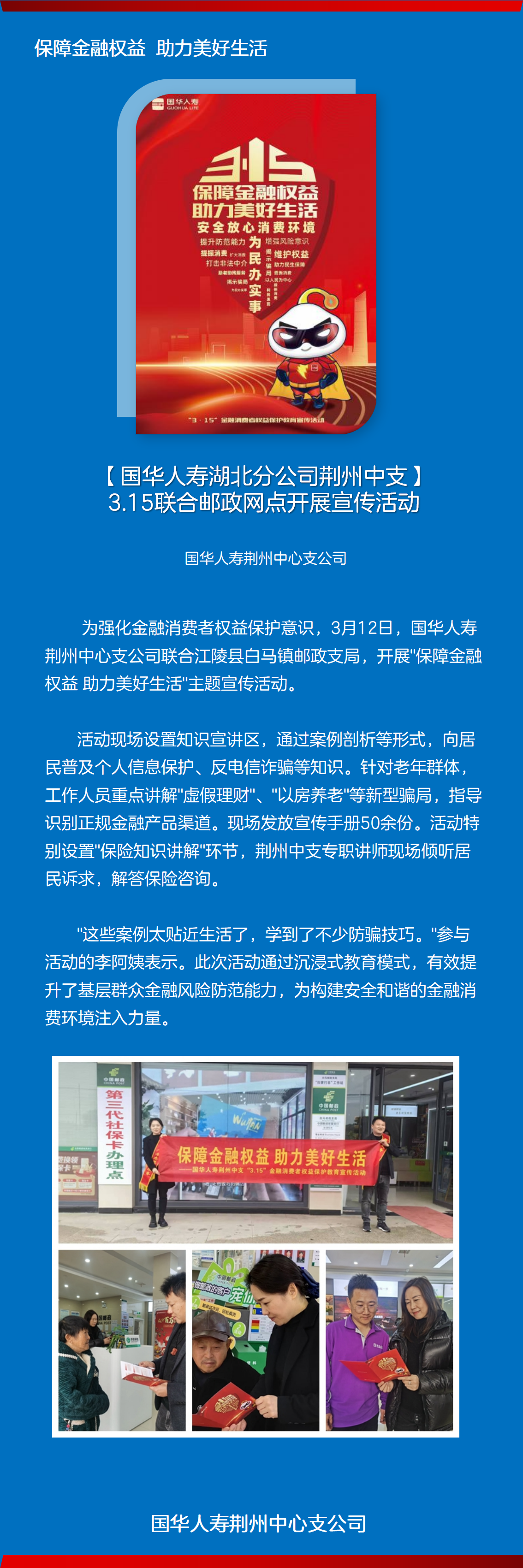 国华人寿湖北分公司荆州中支-教育宣传-3.15联合邮政网点开展宣传活动