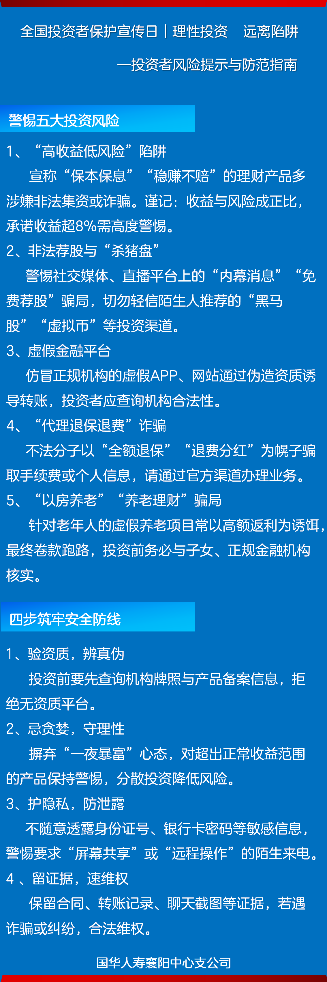 国华人寿湖北分公司襄阳中支:风险提示+理性投资 远离陷阱