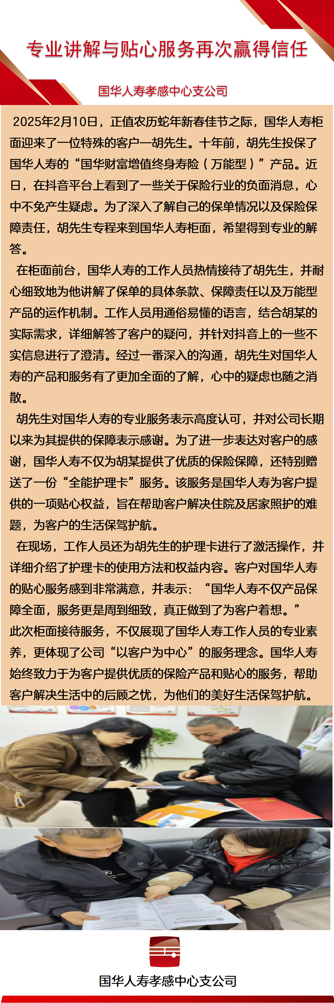 国华人寿湖北分公司孝感中支:教育宣传+专业讲解与贴心服务赢得信任