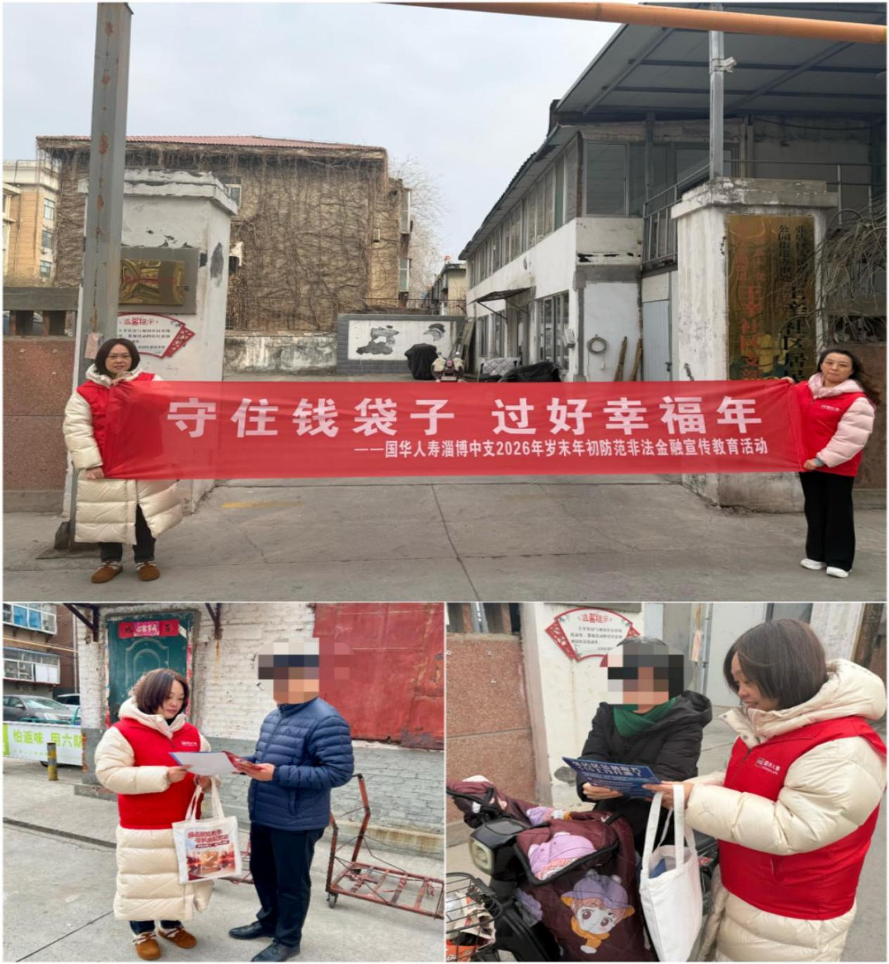 2026-02-13为深入贯彻落实国家金融监督管理总局淄博监管分局关于岁末年初防范非法金融活动宣传教育的工作要求,前移风险防范关口,从源头上防范化解非法金融活动风险,国华人寿保险股份有限公司淄博中心支公司(以下简称“国华人寿淄博中支”)以“守住钱袋子 过好幸福年”为主题,精心组织、多维发力,全面开展防范非法金融活动宣传教育系列工作,切实提升公众金融风险防范意识和识别能力。
