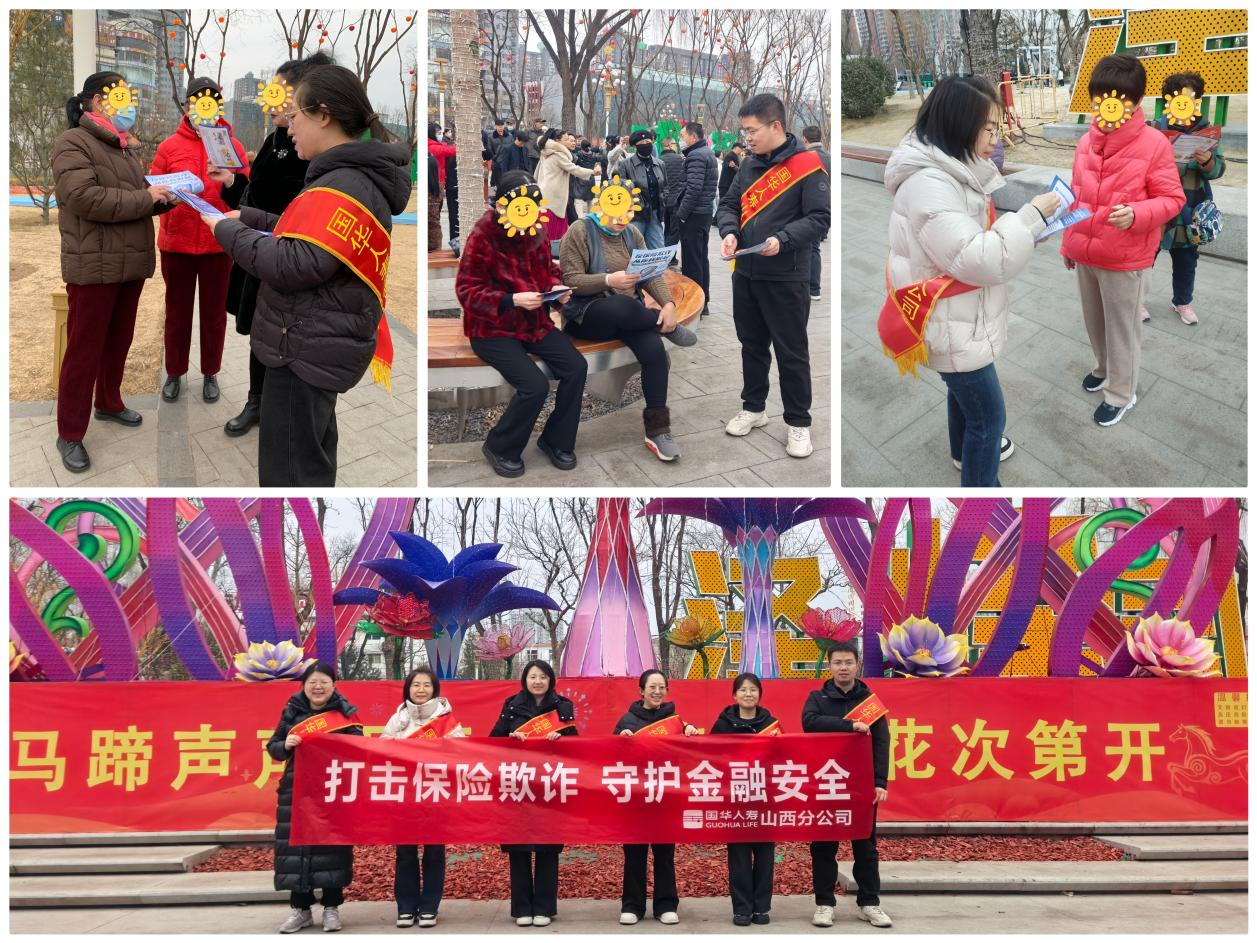 2026-02-27春节期间,往往是各类非法金融活动的高发时期。为提高公众风险防范意识,切实提升客户及社会公众对金融诈骗、保险欺诈、非法集资等违法犯罪活动的防范意识与能力,守护万千家庭的财产安全与幸福生活,国华人寿山西分公司于2026年2月26日下午,在万柏林区千峰南路街心公园组织开展了关于“打击保险欺诈 守护金融安全”主题的宣传教育活动。