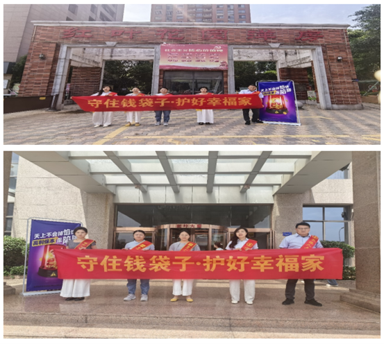 2025-06-20为进一步提高群众对非法金融活动的防范意识,增强对非法集资的警惕性、敏锐性,6月13日,国华人寿六安中支联合同业机构走进红叶花园洋房小区,开展以“守住钱袋子 护好幸福家”为主题的防范非法金融活动宣传月活动。活动现场通过悬挂横幅、摆放展架等方式向群众深入宣传非法集资的基本特征、表现形式及社会危害性。揭示非法集资犯罪的欺骗性、风险性,及其危害性。通过宣传日活动让大家对非法集资有了进一步的认知与了解,有效提升了群众的防范风险意识和自我保护能力。