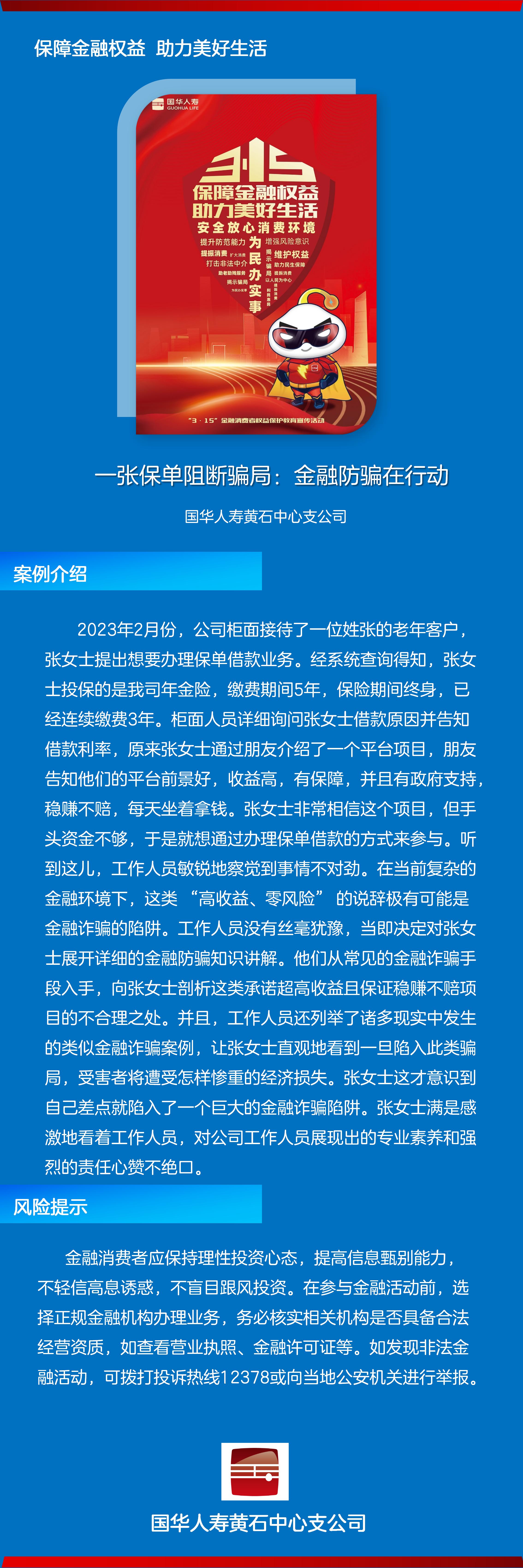 国华人寿湖北分公司黄石中支:以案说险+一张保单阻断骗局:金融防骗在行动