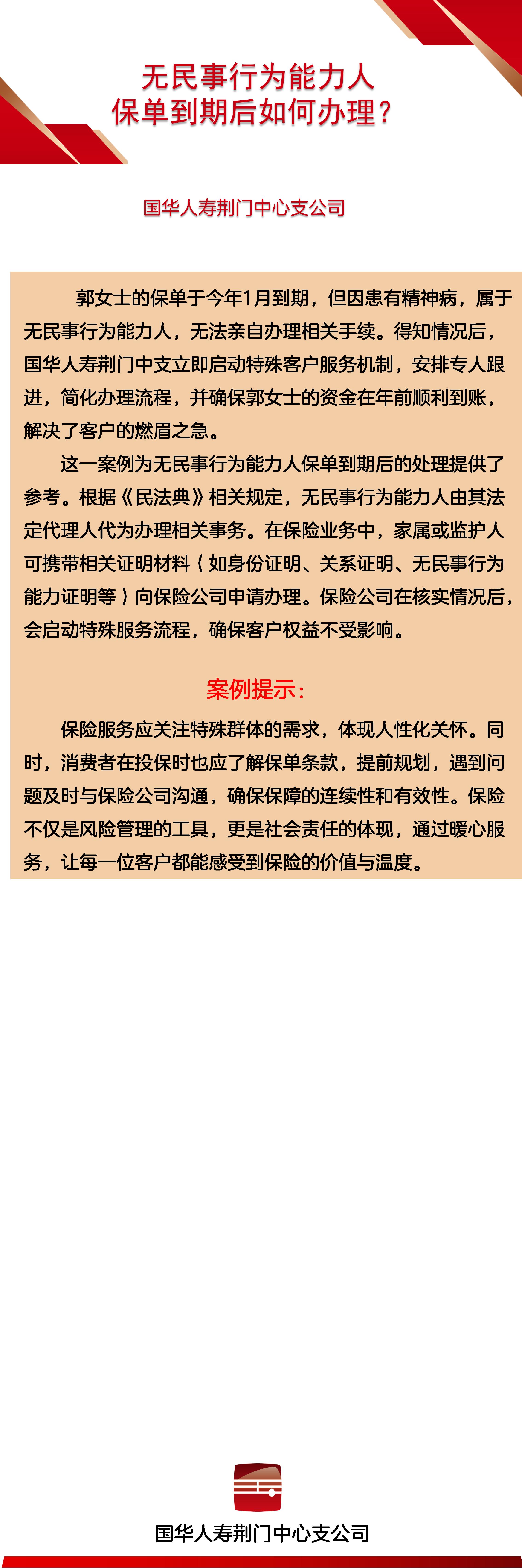 国华人寿湖北分公司荆门中支:以案说险+无民事行为能力人保单到期后如何办理?