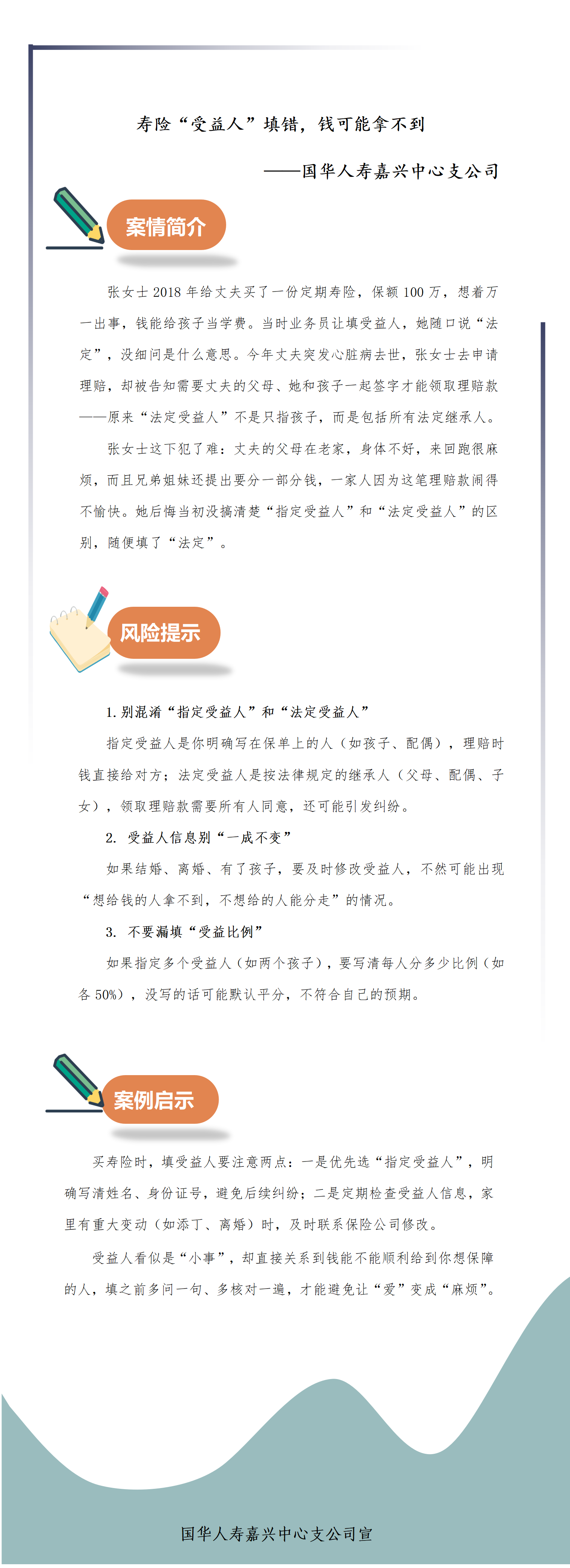【国华人寿嘉兴中心支公司】以案说险:寿险“受益人”填错,钱可能拿不到