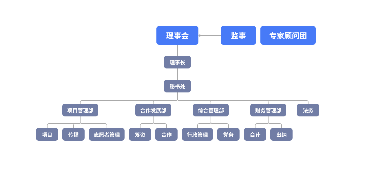 项目管理部:项目管理部负责基金会项目的全生命周期管理,从项目的征询、筛选到实施和宣传;同时负责志愿者队伍发展和培训工作;