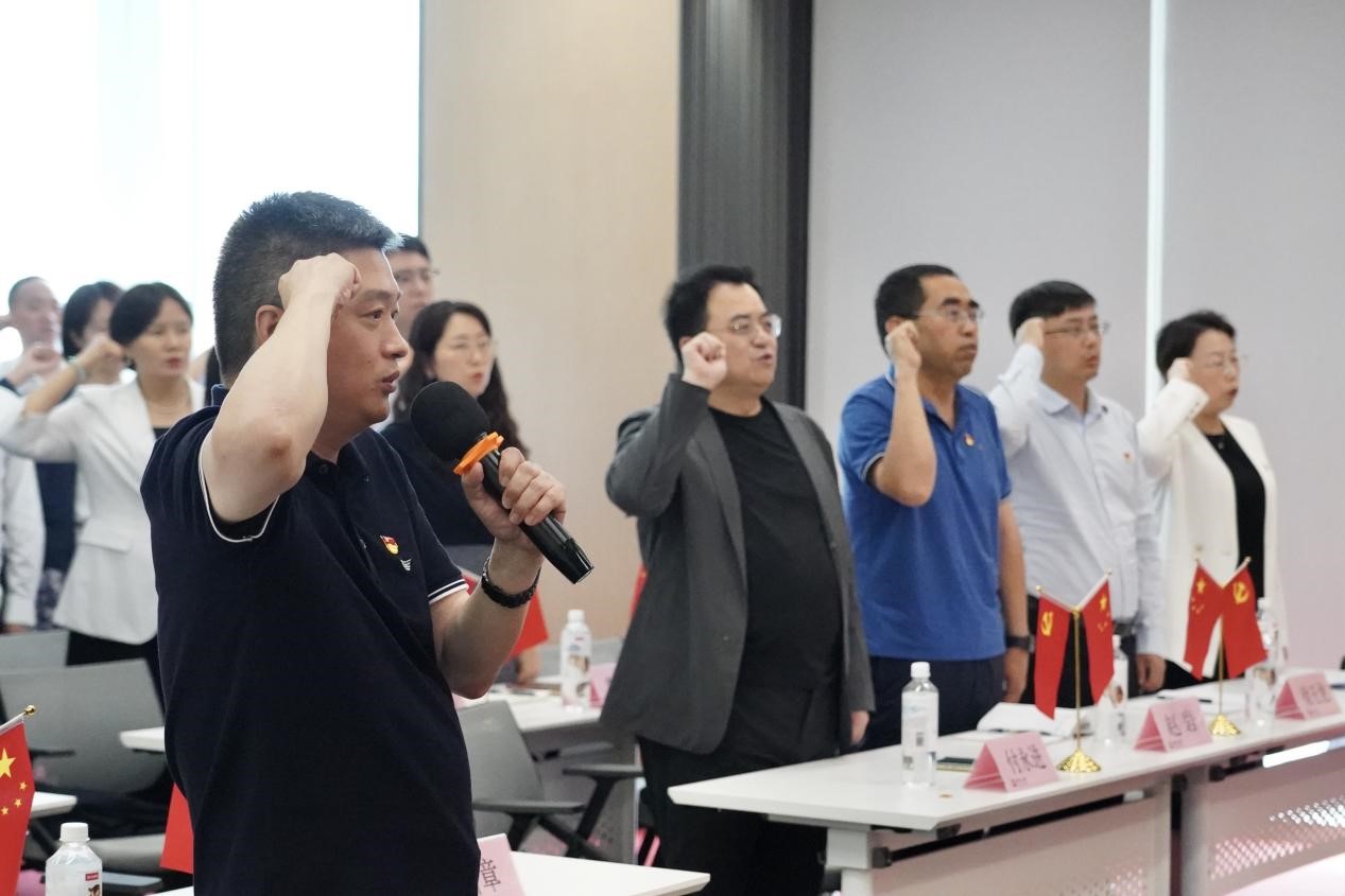 在庄严肃穆的气氛中,公司党委委员、纪委书记杨新章同志带领大家重温入党誓词,全体与会党员面向鲜红的党旗,举起右手,庄严宣誓。铿锵的誓言,是对入党初心的深情回望,理想信念的深刻洗礼,更是对责任使命的郑重承诺。