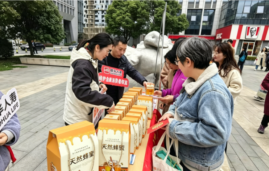 - • 社区公益宣传:在荷叶地街道绿宜居社区、凯旋门社区举办的“3·15金融消费者权益保护教育宣传”活动中,分别向参与活动的老年居民发放蜂蜜74瓶与64瓶。